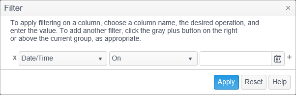 | Date/Time | A filter which restricts based on the date and time that the log message was recorded. |