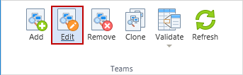 To edit a discovery team, click the team to edit and click the Edit button. This displays the discovery team wizard set to the Team tab.