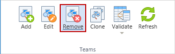 To remove a discovery team, click the team to remove and click the Remove button. The selected team is permanently deleted and cannot be reversed.