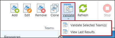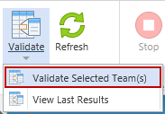 Select a Discovery team or teams and then click the Validate Selected Teams(s) button. A validation grid opens in the Discovery teams view.