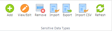 : Allows adding, editing, removal, importing, exporting, and exporting CSVs of Sensitive Data Types.