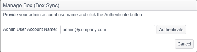 When your Box (Box Sync) credentials have been successfully authenticated you see the following dialog box: