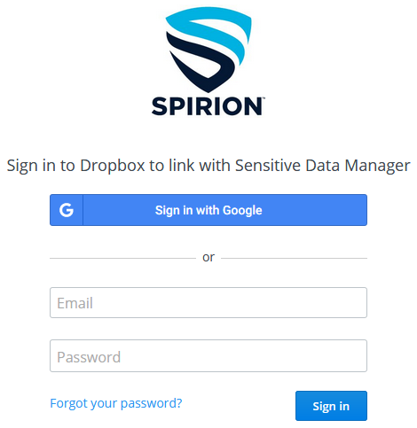 - A browser window opens on the Dropbox site. Enter your admin user account credentials, click Sign in.