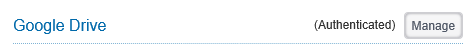 To add or edit the credentials for a Google Drive account click the Manage button and the Manage Google Drive dialog box displays.