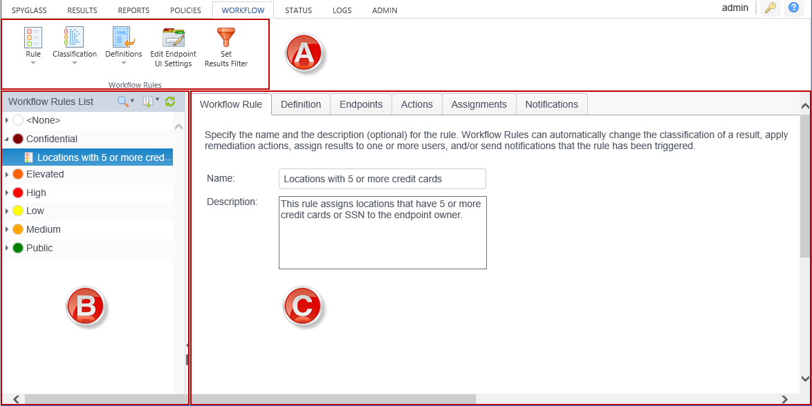 - The Workflow Rules List: Displays and allows management of the list of Workflow Rules and Classifications.