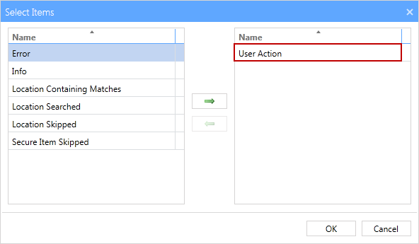 - Select user Action from the column on the left and click the right arrow to add it to the filter. Click OK when finished.
