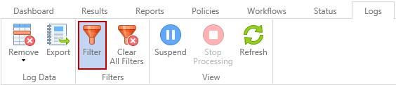 - To restrict the Logs View via the Filter button.