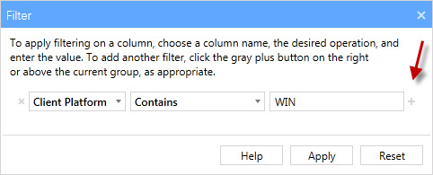The plus button is used to add additional filters allowing you to filter on multiple criteria.