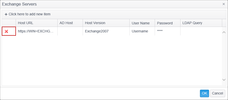 To remove an exchange server from the list, click the red 'X' to the left of the exchange server that you wish to remove.