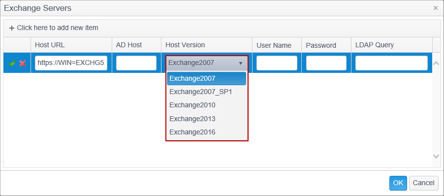 Specify the version of Microsoft Exchange Server by selecting it from the drop-down-list.