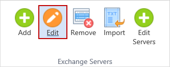 To modify the selected exchange server configuration, click the Edit ribbon button.