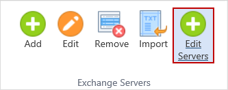 To add an exchange server to the list click the Edit Servers ribbon button.