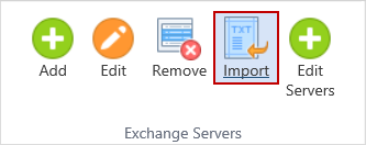 To import a list of Exchange Servers to be included in the search on the endpoint(s) to which the policy applies click the Import ribbon button.