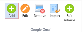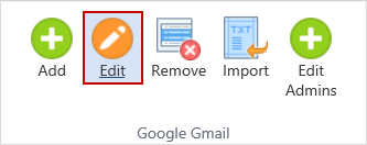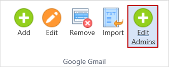 To edit the list of Google Gmail Admins, click the Edit Admins ribbon button.