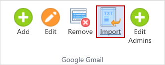 To import a list of Gmail user accounts to be included in the search on the endpoint(s) to which the policy applies click the Import ribbon button.