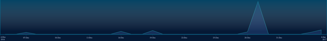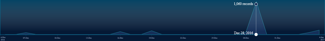 Moving your mouse along the Timeline a vertical dotted line displays showing the quantity of records that were that were found for a particular search and the date that the search was performed. In the screen shot below there was a search performed on December 28 which found 1,060 records (i.e., matches) containing sensitive data.