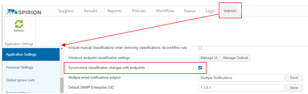 Select the Synchronize classification changes with endpoints option.